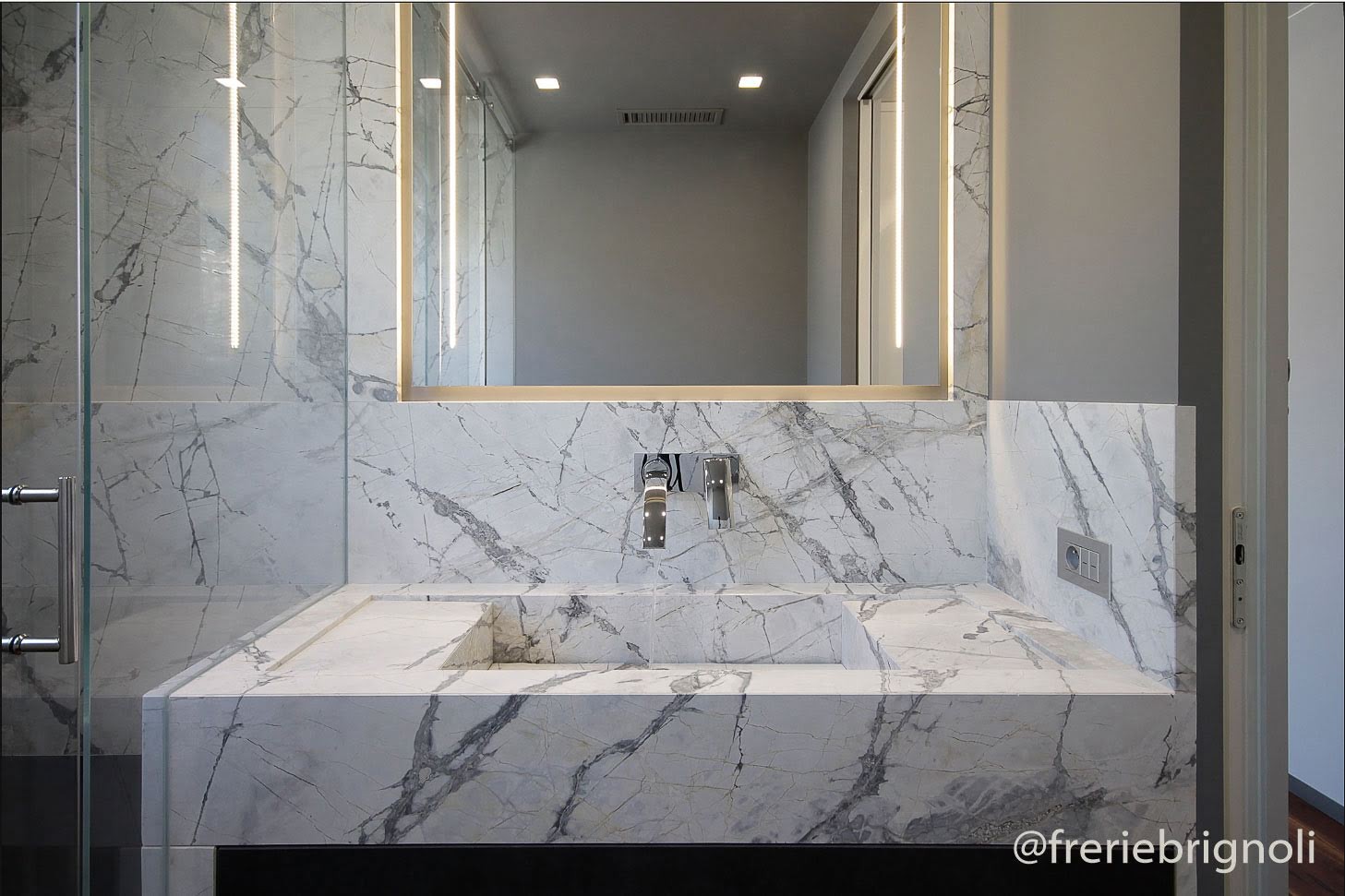 Tra le varietà di marmo che lavoriamo vi sono il marmo di Carrara, lo Statuario e il Calacatta con le loro nuance senza tempo, che virano dal bianco intenso al venato grigio-blu, capaci di donargli un’eleganza morbida e inconfondibile, e il marmo Arabescato Orobico, materiale italiano estratto in provincia di Bergamo, nelle sue varianti di colore rosso con venature bianche oppure grigio con venature oro che lo rendono elegante e inconfondibile.